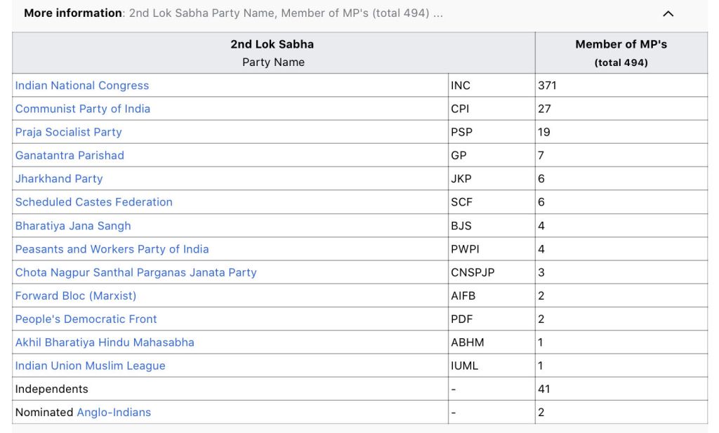 ഇന്ത്യൻ നാഷണൽ കോണ്ഗ്രസിന് മൃഗീയ ഭൂരിപക്ഷമുണ്ടായിരുന്ന ആദ്യ ലോകസഭകളിൽ പ്രതിപക്ഷം തന്നെയുണ്ടായിരുന്നില്ല. പ്രതിപക്ഷ നേതാവ് എന്നൊരു പദവി തന്നെ വന്നത് 1977ലാണ്. അന്നുവരെ കോണ്ഗ്രസ് ആയിരുന്നു ജനാധിപത്യപരമായി ഭരണം കയ്യാളിയിരുന്നത്. 27 അംഗങ്ങളുമായി അവിഭക്ത കമ്യൂണിസ്റ്റ് പാർട്ടിയും 19 അംഗങ്ങളുള്ള പ്രജാ സോഷ്യലിസ്റ്റ് പാർട്ടിയും 7 അംഗങ്ങളുള്ള ഗണതന്ത്ര പരിഷത്തും ആറു സീറ്റുകൾ വീതം നേടിയ ഇപ്പോഴുള്ള റിപ്പബ്ലിക്കൻ പാർട്ടിയുടെ പൂർവരൂപമായ അംബേദ്കറുടെ പട്ടികജാതി ഫെഡറേഷനും ജാർഖണ്ഡ് പാർട്ടിയുമായിരുന്നു 371 സീറ്റുള്ള കോണ്ഗ്രസിന് ശേഷമുള്ള 1957ലെ രണ്ടാം ലോക്സഭയിലെ വലിയ കക്ഷികൾ. അവരുടെ പിന്തുണയോടെയാണ് അന്ന് സഭയിൽ സ്വതന്ത്ര മെമ്പർ ആയി അടൽബിഹാരി വാജ്പേയിയെ തോൽപ്പിച്ചു കൊണ്ട് മഥുരയിൽ നിന്നും വിജയിച്ചു വന്ന രാജാ മഹേന്ദ്രപ്രതാപ് സിങ് അന്ന് ജീവിച്ചിരിക്കുന്നവരിലെ തീവ്രദേശഭക്തരായ വിപ്ലവകാരികൾക്ക് രാഷ്ട്രത്തിന്റെ ആദരം നൽകണം എന്നാവശ്യപ്പെട്ടത്.